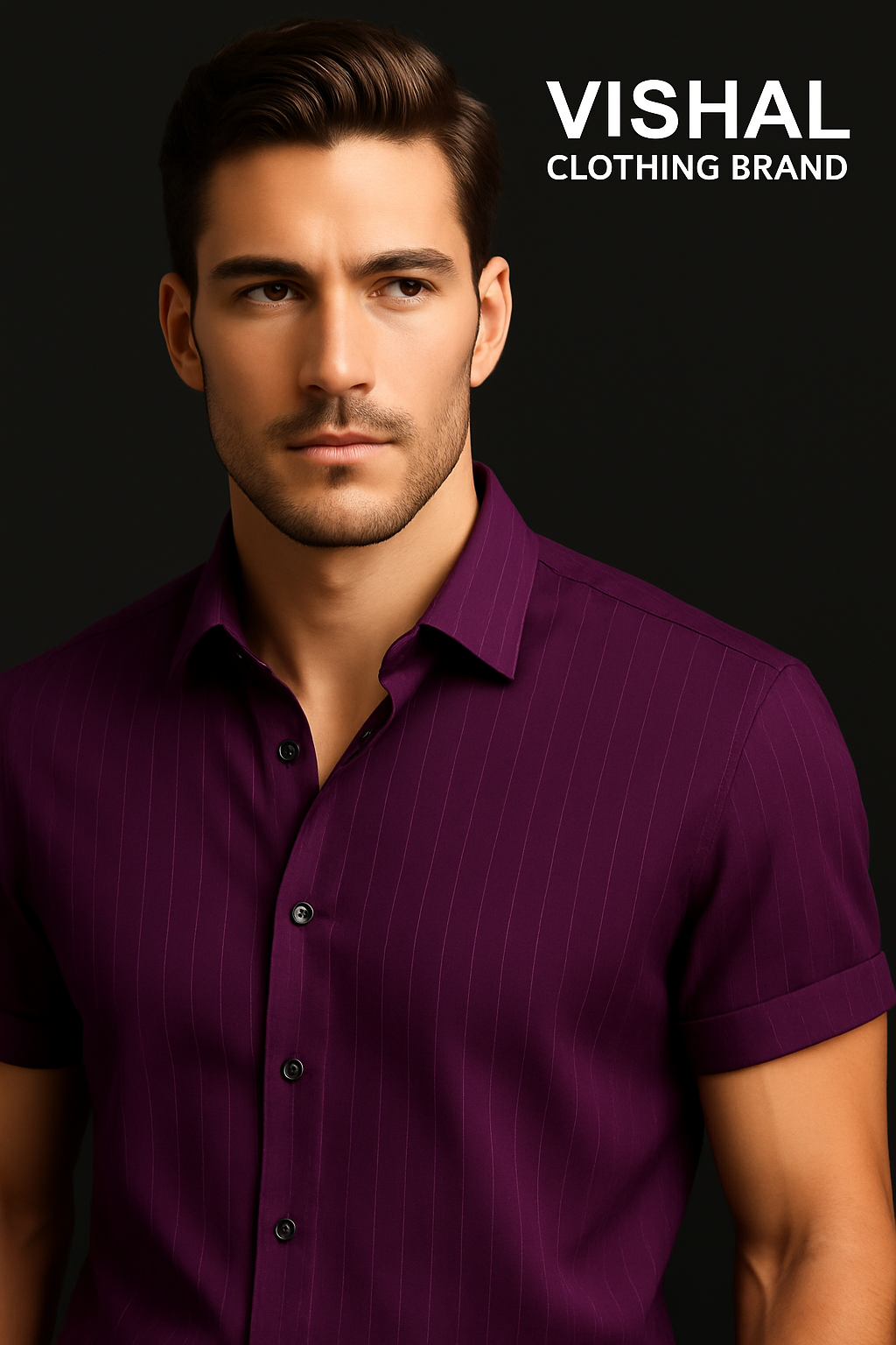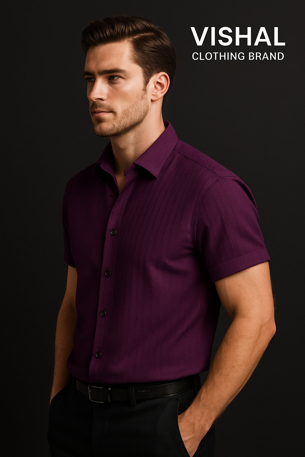 Elevate your wardrobe with the Vishal Plum Crest Shirt, a perfect blend of refined texture and modern elegance. Crafted from premium breathable fabric, this short-sleeve shirt offers a tailored fit that enhances your silhouette while ensuring all-day comfort. The rich plum hue adds a touch of royalty, making it an ideal choice for both casual evenings and semi-formal settings.
